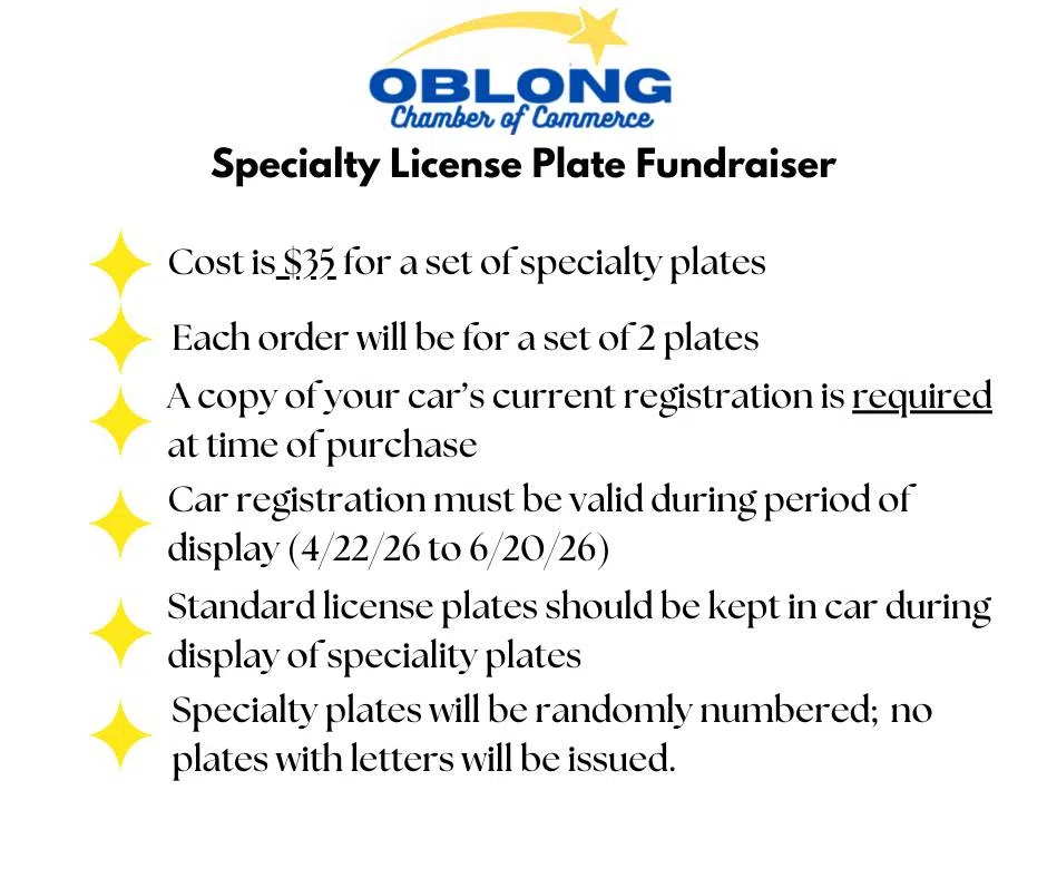 Catt says “Freedom Fest” specialty license plates can be ordered and placed on your vehicles for 60 days before July 4th, 2026. She says if you haven’t purchased your specialty plates yet, there’s still a little time. The Oblong Chamber of Commerce will be taking orders until March 31st. To learn more about “Freedom Fest” and the commemorative license plates, visit the Oblong Chamber on Facebook.
